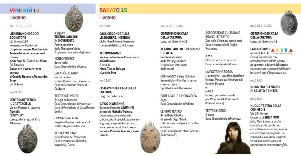 — Firenze, Livorno e l’isola di Gorgona — incontri, spettacoli, performance musicali, testimonianze, laboratori e proiezioni che raccontano la forza del teatro come strumento culturale, sociale ed educativo all’interno degli istituti penitenziari.